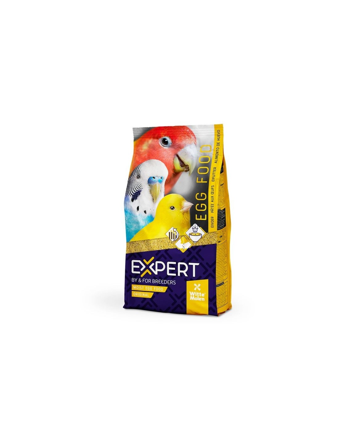 Alimento complementario húmedo para aves que coman semillas. Esta pasta de huevo se puede proporcionar directamente, pero también se mezcla fácilmente con otros tipos de pasta al huevo o semillas.
