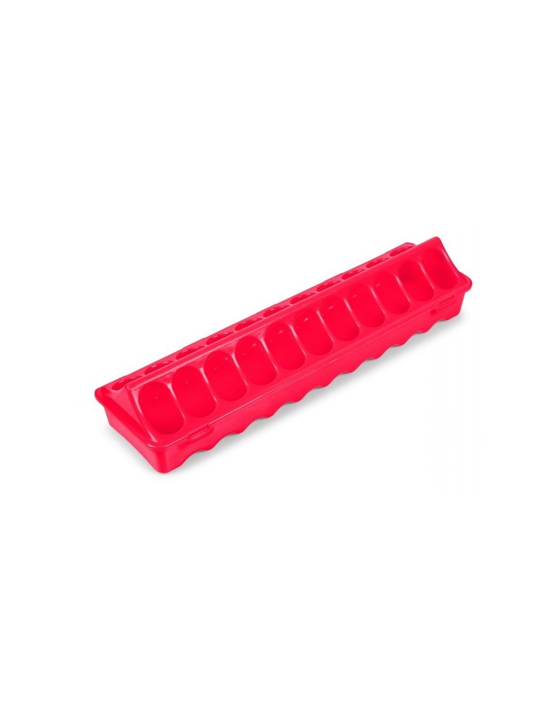 Comedero plástico ideal para para pollitos de 1ª edad cuyo diseño incluye orificios individuales, para evitar el desperdicio del pienso.