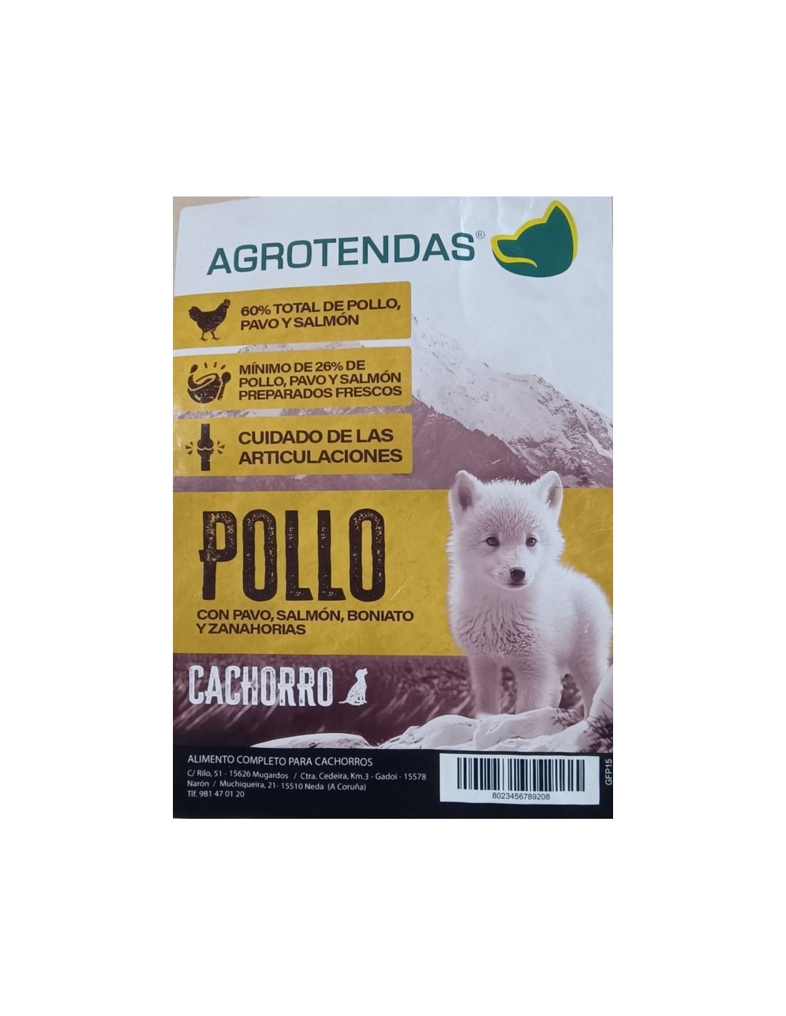 Alimento compuesto para cachorros a base de pollo con pavo, salmón, boniato y zanahorias, libre de cereales.