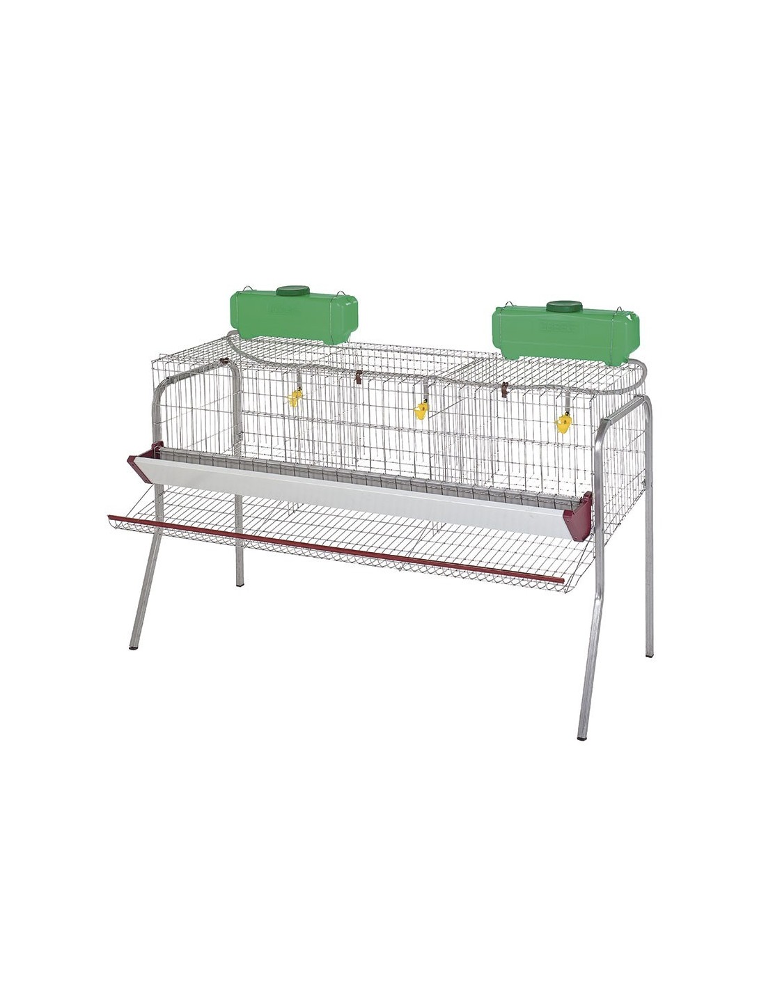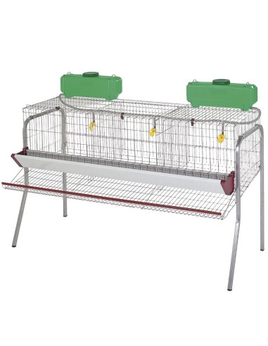 Batería de jaulas para gallinas ponedoras tipo california dotada totalmente de comederos en chapa galvanizada y lacada y bebederos.