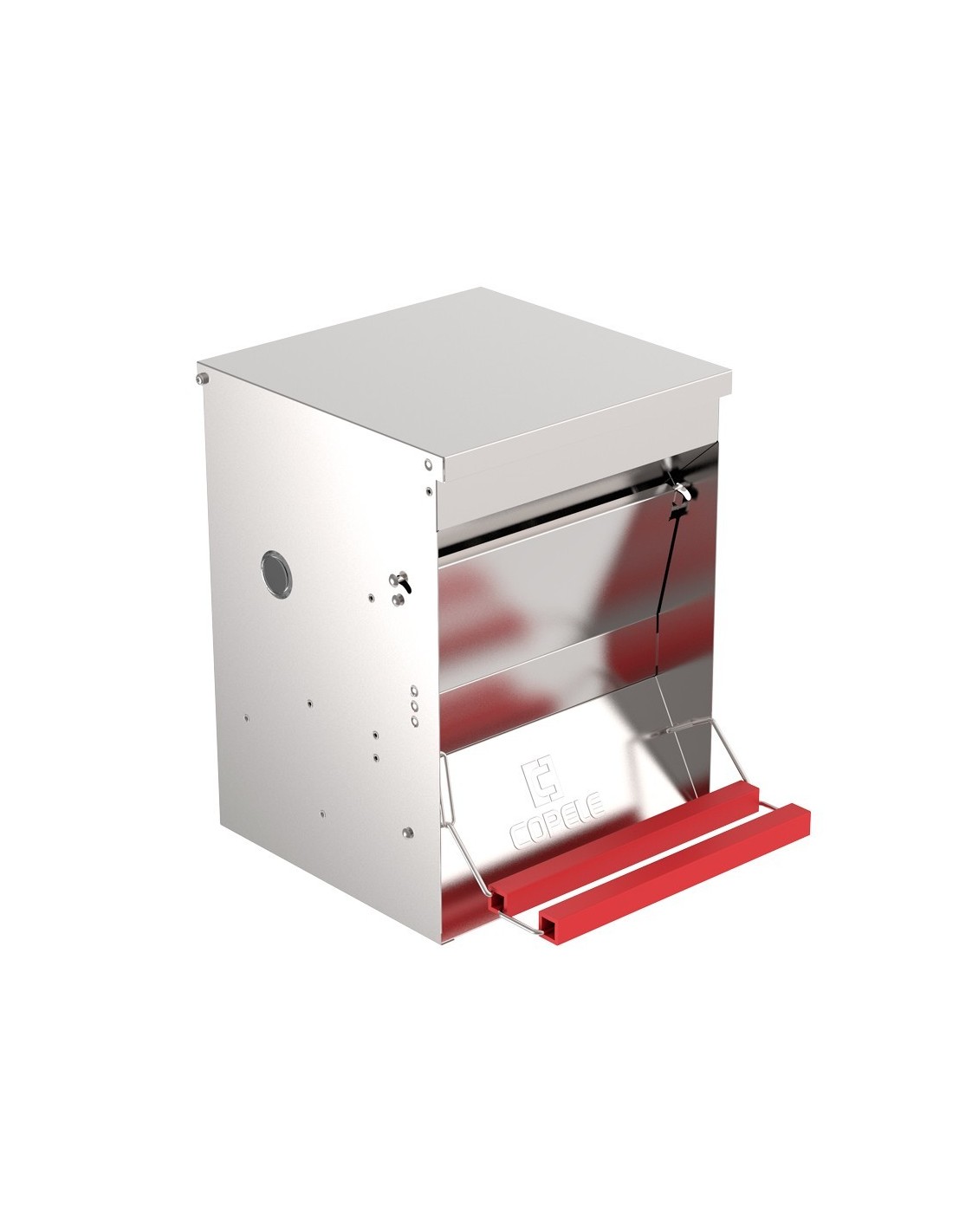 Tolva de ultima generación de accionamiento mecánico para aves, diseñado para evitar que roedores o pájaros accedan a la comida, o que esta se derrame y desperdicie.