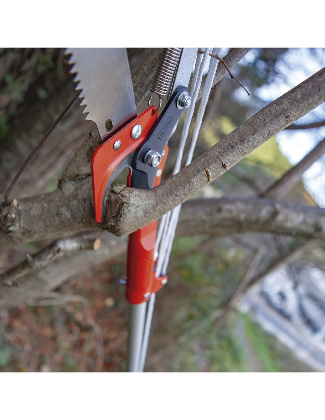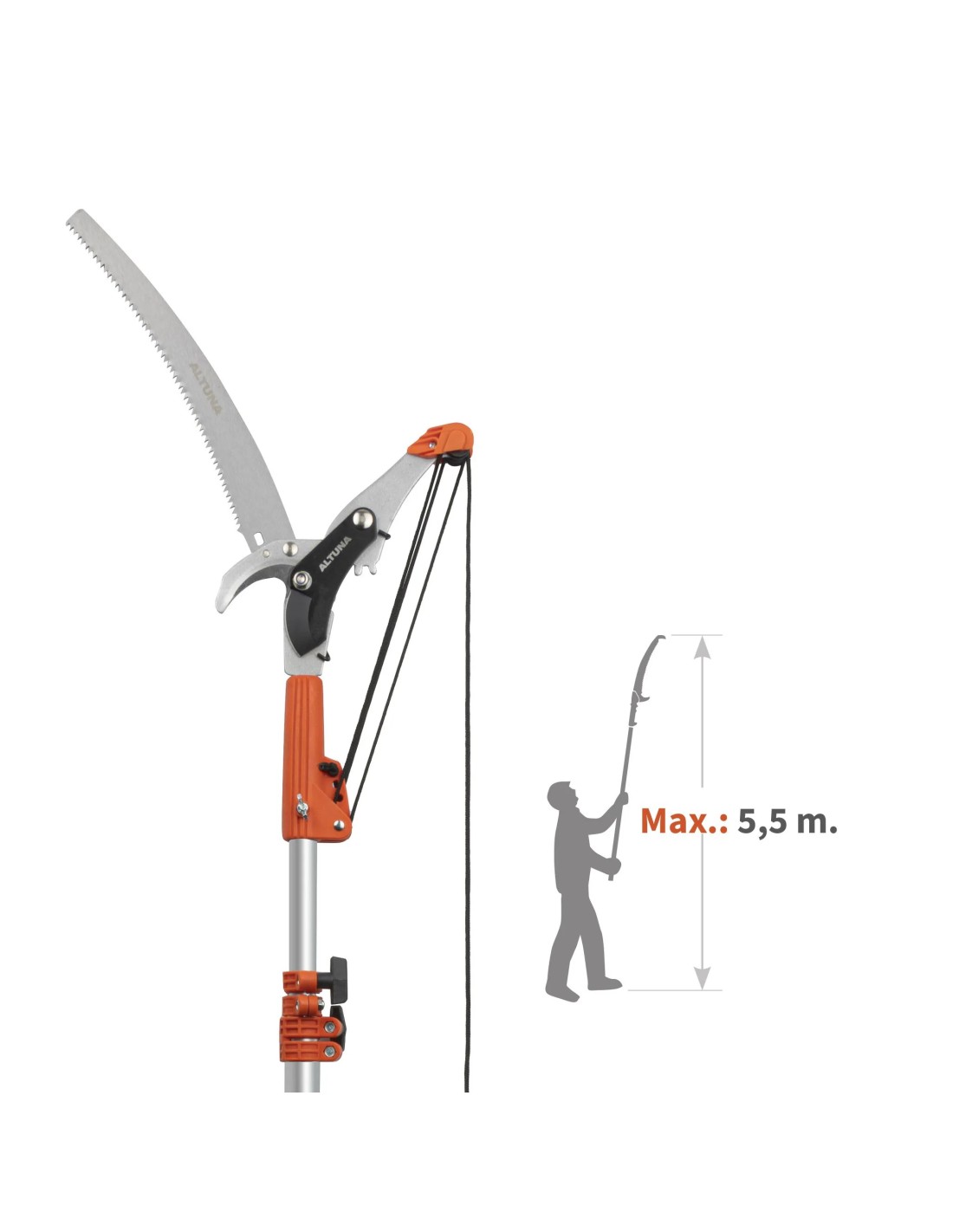 Tijera cortarramas telescópica ALTUNA J496 con sistema multiplicador de fuerza y serrucho de dentado japonés. Gama Advanced. Telescópica de 1,8 a 3,5 m, ideal tanto para usuarios aficionados como avanzados.