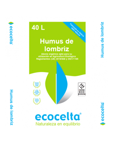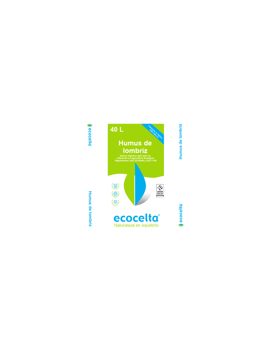 El humus de lombriz Ecocelta es un abono orgánico obtenido a partir de la digestión de la materia orgánica por lombrices del género Eisenia. Al pasar por su tracto digestivo enriquece el producto con una flora microbiana benéfica que, junto con su contenido en nutrientes y ácidos húmicos, lo convierte en un excelente fertilizante y regenerador de suelos.