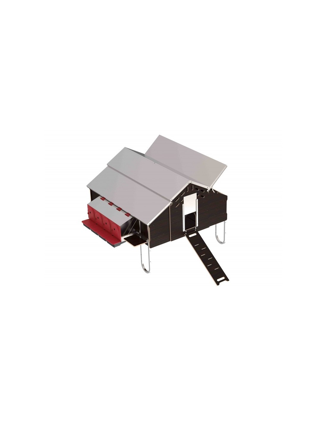 Techo abatible para ver el interior del corral. Puerta manual de guillotina para entrada y salida de los animales.